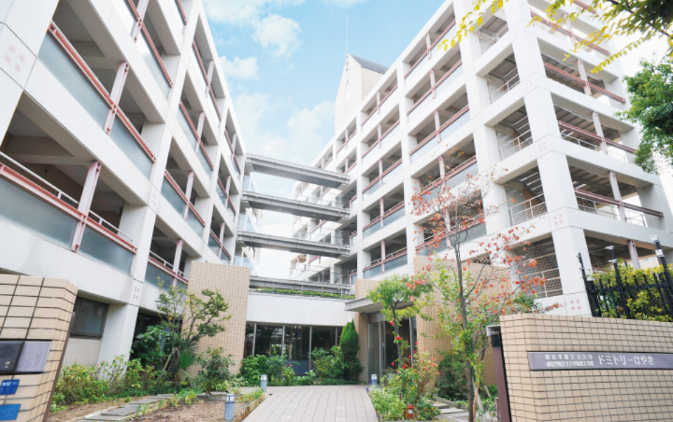 大学正門の東側にたたずむ、7階建てのおしゃれな外観が特長の運動部専用の寮です。入寮に際しては条件がありますので、詳しくは学生支援部までお問い合わせください。