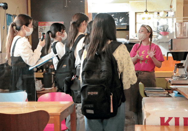 大学の最寄り駅の阪急塚口駅に隣接する塚口商店街と連携し、来客を増やすためのイベント企画やマーケティング調査を実施。商店街の人たちとの協力を得て、SMSを利用した集客イベントの企画運営、お店のクーポン企画や来店促進冊子の制作なども行いました。