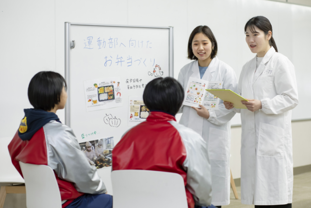 ①スポーツ栄養活動、②地域健康推進活動についてスポーツ栄養、地域栄養学(演習科目)等の中で学生の教育活動の一環として展開します。