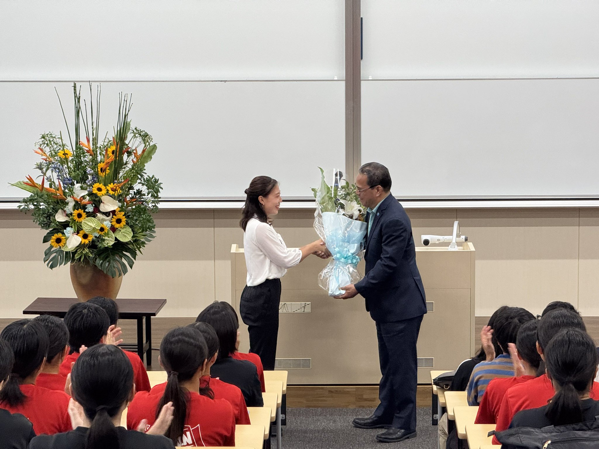 児童教育学科2年生の廣瀬杏奈さんが学生を代表して「ペサウが紡いだ物語は私たちにとって大きな励ましです。これからも互いの国の伝統と文化を尊重し、その深い絆を次世代に伝えていきたいです」と英語でスピーチを行いました。
