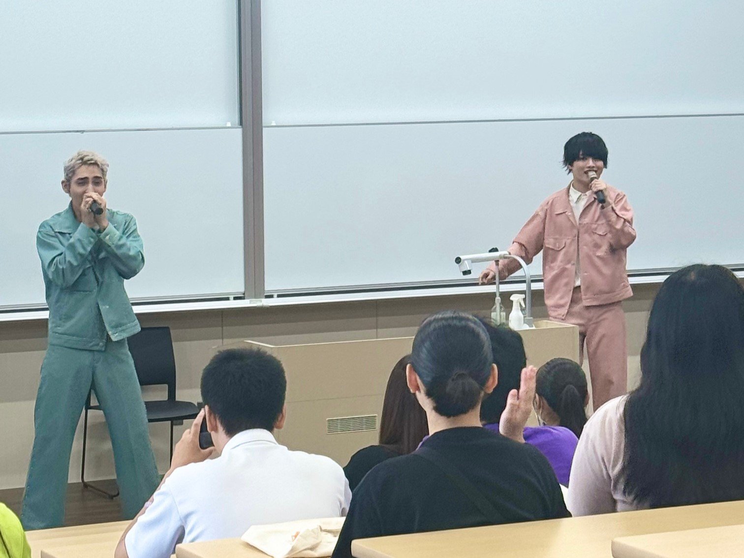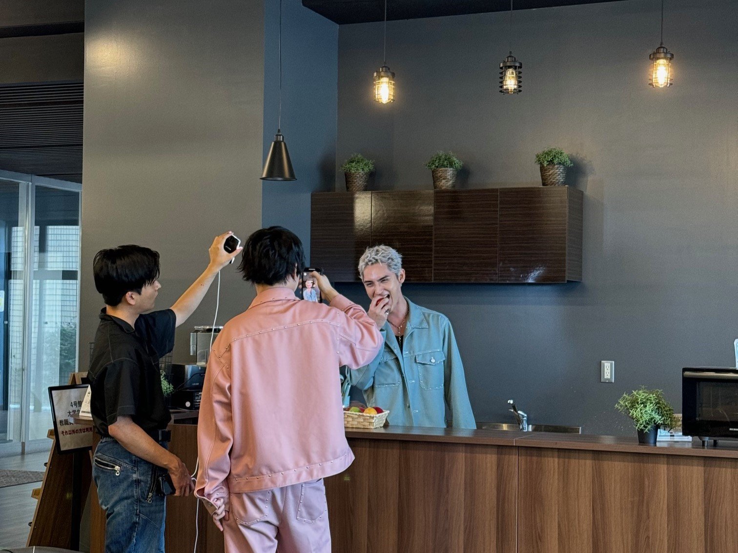 イベント終了後は本学のキッチンで「ねえねえりょうすけ!Mrs.GREEN APPLEの青と夏を歌って」の動画を撮影していただきました。その動画はペルピンズさんのTikTokとInstagram、本学のInstagramで公開されていますのでぜひご覧ください。