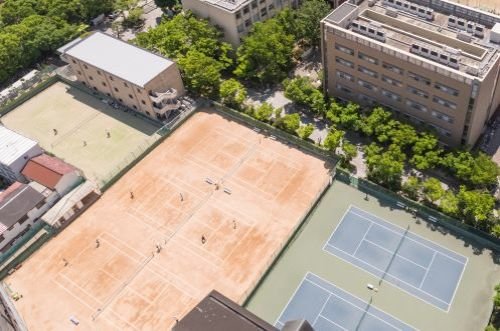 学内には、全6面のテニスコートを備え、トレーニングルームも完備。成長を実感できる環境で、全国をめざしたい仲間を募集しています!