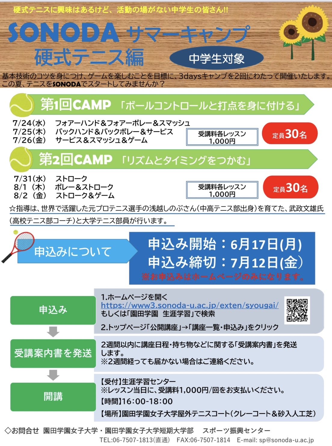 SONODAサマーキャンプ硬式テニス編【中学生対象】