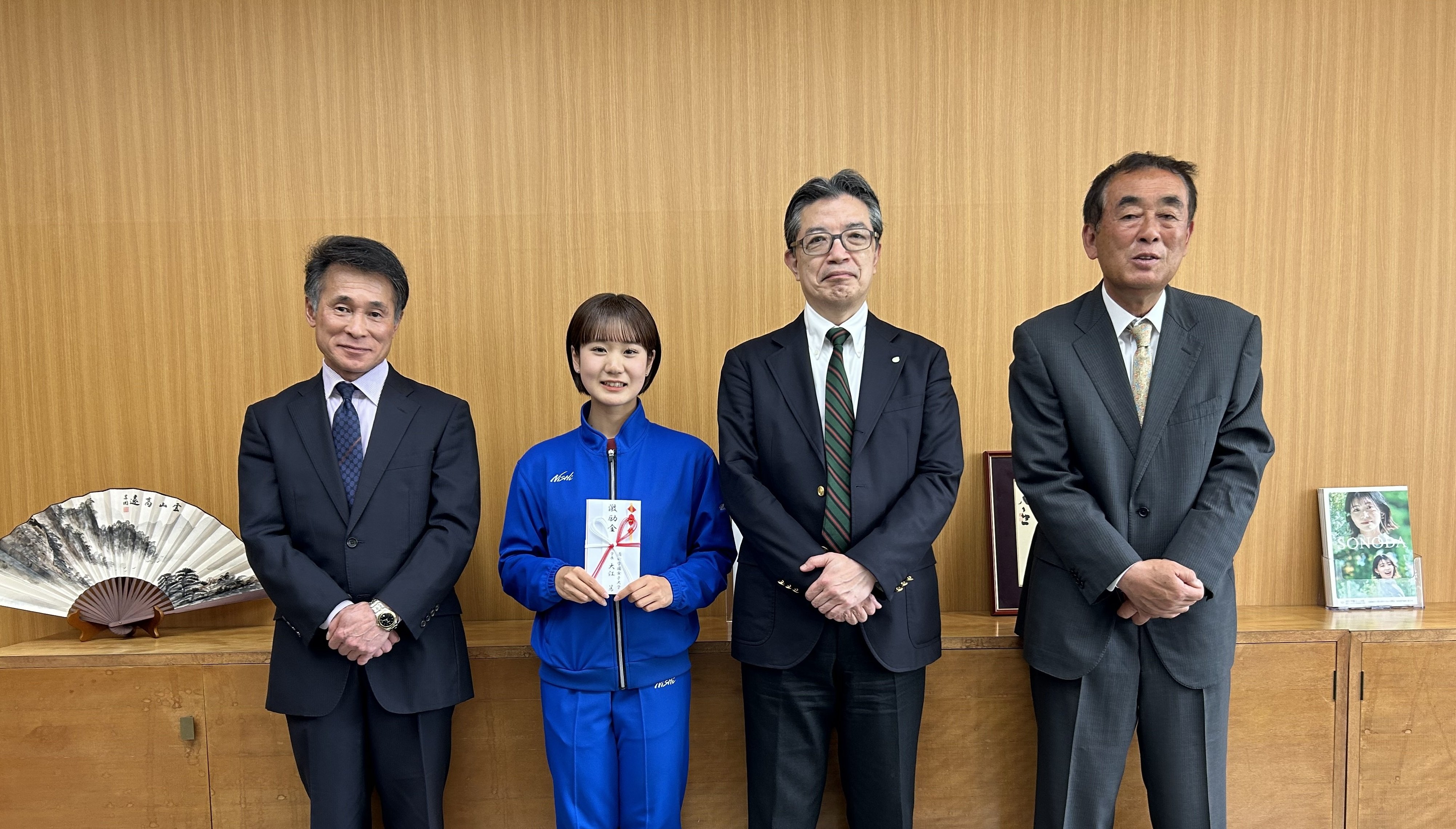 大江学長より森本さんの活躍を祈念して激励金をお渡しいただき、激励のお言葉を頂戴しました。