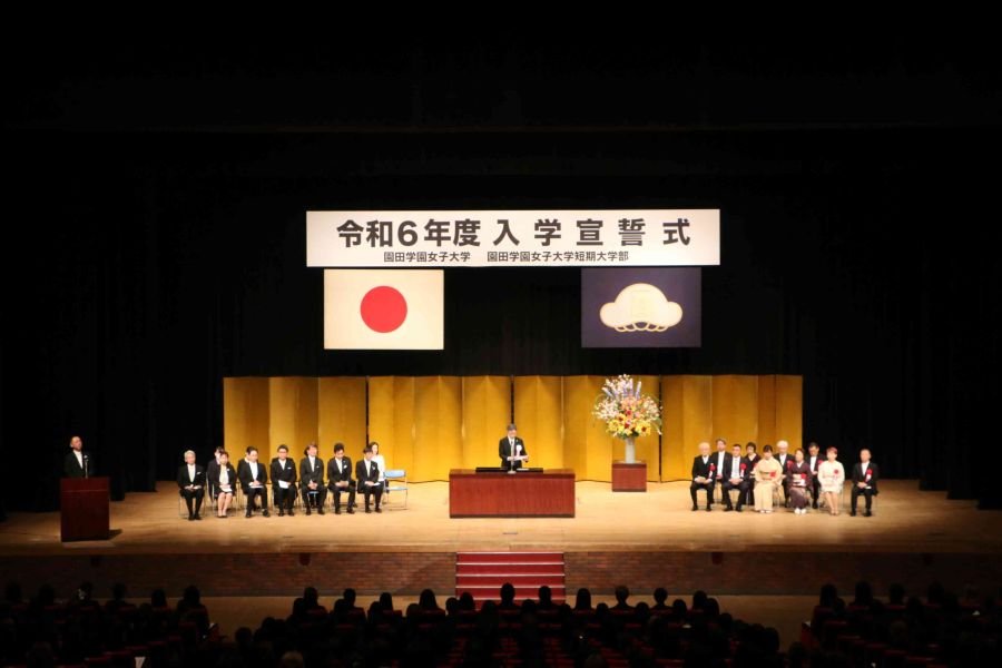 本日より、皆さんが園田学園女子大学ならびに園田学園女子大学短期大学部の学生として心身ともに健やかで明るく楽しい、そして実り多い学生生活を送られることを心から希望し、入学宣誓式に当たってのお祝いの言葉といたします。