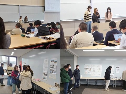 SONODAオープンラボ 第4回目として"尼崎市内の高校生・大学生が、地域の企業・団体と連携しながら、新たな企画や課題解決に取り組んだ活動の内容や成果を披露する報告会を開催しました。今回は、約100名の高校生・大学生が参加し、それぞれ地域と連携して取り組んだ18のプロジェクト発表がありました。本学からもビジネス学科、児童教育学科(ポスターセッションのみ)、学生地域連携推進委員会「つなgirl」の学生3グループの発表がありました。当日は本学キッチンカーでのカレーの提供や学内見学会も行い、高校生や他大学の学生も本学の魅力に触れていただきました。