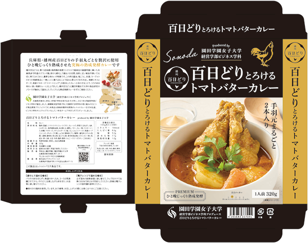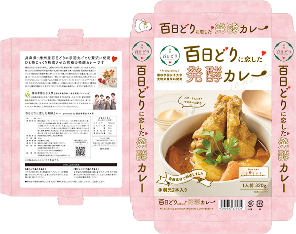 播州百日どりは卵から孵化して概ね100日の間、解放平飼いで自然に近い状態で大切に育てられた鶏です。肉の味は濃厚で第15回地鶏・銘柄鶏好感度コンテストで最高位の最優秀賞に輝いたブランド鶏。その播州百日どりを醤油、塩こうじ、甘酒、ヨーグルトの4つの発酵食品に一晩じっくり漬け込むことで肉の旨みと柔らかさをしっかり引き出し、カレーには漬け込んだ発酵エキスとチーズ、そしてスマートエッグマヨネーズを入れてコクのある味わい深い発酵カレーが誕生しました。柔らかくて美味しい播州百日どりと園田学園女子大学がコラボしてできた究極の発酵カレーをぜひご堪能ください。