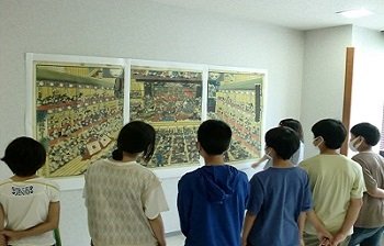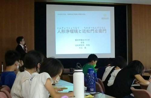 同小学校は「近松郷土学習」に取り組んでおられ、6年生は総合的な学習の時間で近松門左衛門について学んでいます。グループに分かれて閲覧室を見学、本研究所の所長でもある大江学長や坂本研究員から人形浄瑠璃や近松の作品についてレクチャーを受け、熱心に質問していました。学習の成果は12月の「近松デー」で披露するとのことです。