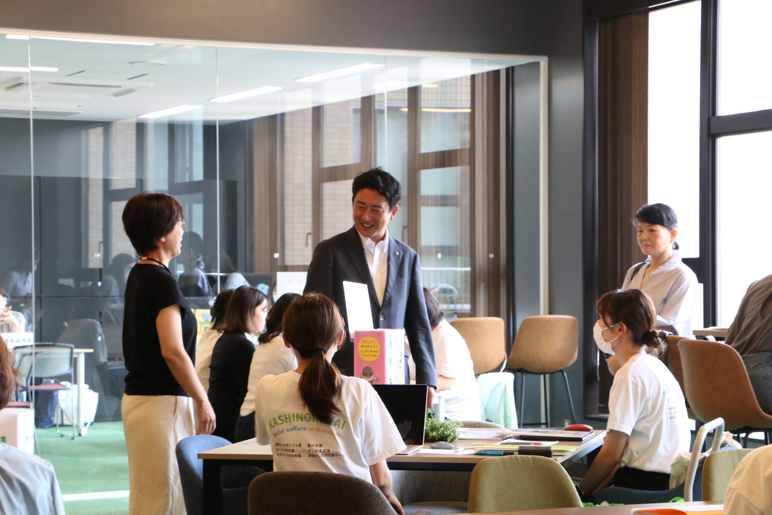 また、尼崎市長も本学を訪れ、保育就職フェアの様子を視察されました。